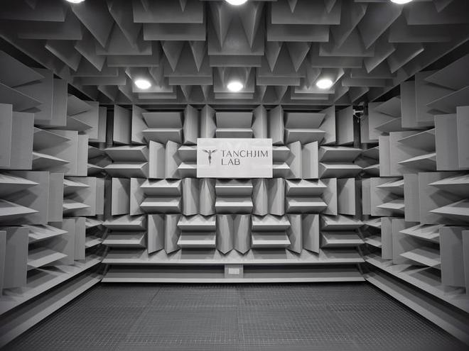 经专业权威检测机构深圳市计量质量检测研究院认证,TANCHJIM LAB全消声室中心点P0本底噪声低至6.8dBA,均值7.4dBA,为声学测试提供了理想条件。